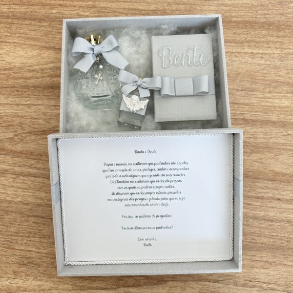 Caixa tamanho 15x20 revestida em tecido com bordado na tampa.