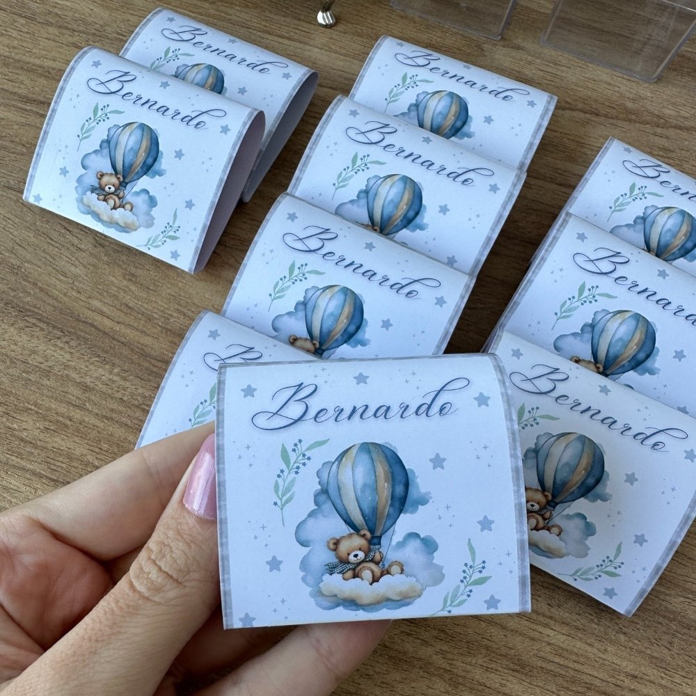 No ato da compra, você pode informar o nome do bebê, bem como as cores preferidas para a personalização do rótulo. Isso torna cada unidade única e adequada ao seu gosto e evento.