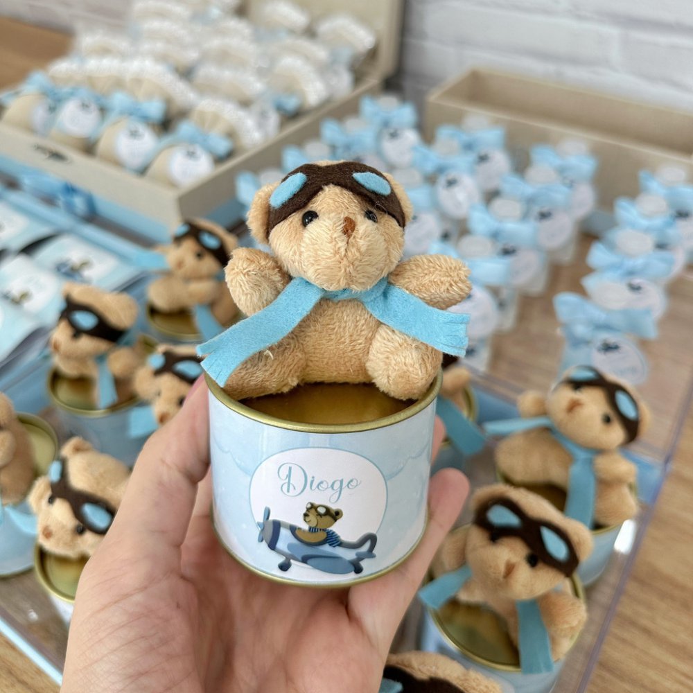 Nossas latinhas com ursinho aviador vêm vazias, permitindo que você as personalize de acordo com suas preferências e necessidades. Você pode preenchê-las com diversos itens, como: