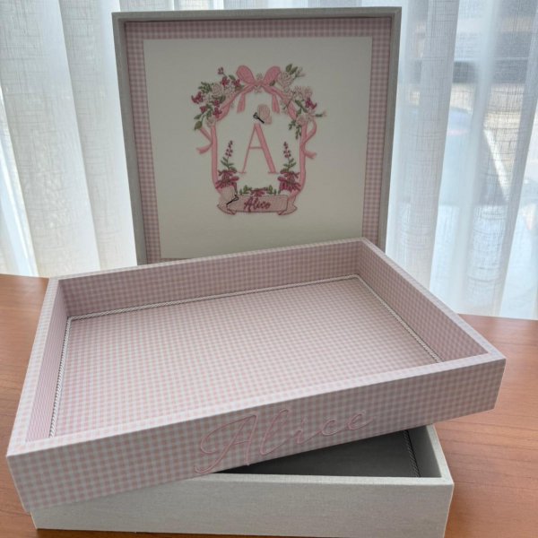 Caixa 30x30 e bandeja 25x35 xadrez rosa